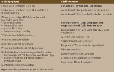 Tabelle 1: WHO-Klassifikation aggressiver Lymphome (Bild vergrössern: auf Bild klicken)