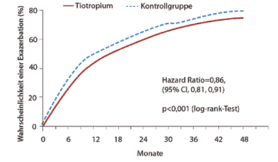 Exazerbationen konnten durch Tiotropium verhindert und die Lebensqualität verbessert werden. Ausserdem war die Einnahme von Tiotropium mit einer geringeren respiratorischen und kardialen Morbidität sowie Mortalität assoziiert.