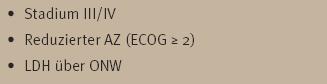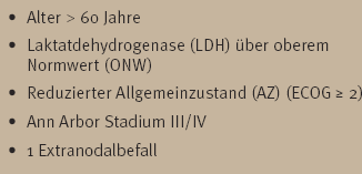Bei den jüngeren Patienten (Alter < 60 Jahre) wurden nur solche mit niedriger LDH eingeschlossen und Etoposid konnte in Kombination mit CHOP weitgehend problemlos appliziert werden [6]. Gegenüber dem CHOP-Regime liess sich mit dem CHOEP-Regime eine Verbesserung der Rate kompletter Remissionen von 80% auf 88% erreichen und der Anteil der nach 5 Jahren krankheitsfreien Patienten erhöhte sich von 58% auf 70%. Damit sollte in diesem Kollektiv das CHOEP-Regime dem CHOP-Regime trotz höherer Hämatotoxizität vorgezogen werden.