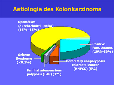Aus folgender Abbildung geht deutlich hervor, dass es sich bei der überwiegenden Mehrheit der Kolonkarzinome um so genannte sporadische Tumoren handelt, also solche, die unabhängig von einem umschriebenen Syndrom auftreten.