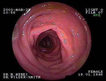 Bei negativer Stuhlbakteriologie und fehlendem Clostridium diff.-Toxinnachweis im Stuhl und bei persistierenden Durchfällen trotz hohen Dosen von Loperamid entschliessen Sie sich, eine Kolonoskopie durchführen zu lassen, mit der Frage nach einer Kolitis.