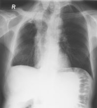 Husten und Auswurf hätte er immer gehabt, berichtet der Patient. Mit der Frage nach einem Infiltrat wird ein Röntgenbild verordnet: