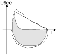 Typische Fluss-Volumenkurve bei COPD, hier mit Emphysem