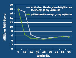 Abbildung 2: Langzeit-Verbesserung des PASI unter Etanercept | |
